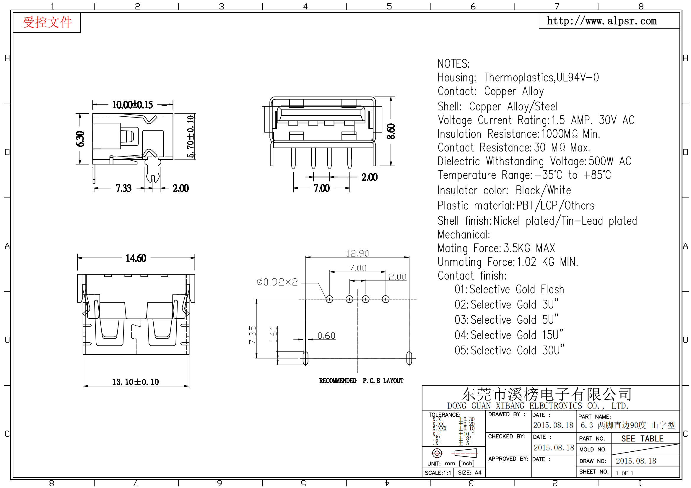 7.接触阻抗:300MΩMAX.INITIAL;400MΩAX